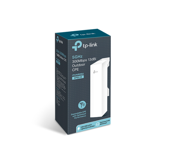 The TP-Link Pharos CPE510 is a rugged outdoor wireless CPE (Customer Premises Equipment) built for long-range, high-performance use. Ideal for point-to-point (PtP), point-to-mult point (PtMP), and outdoor WiFi coverage applications, the CPE510 combines a powerful 5 GHz radio, high-gain directional antenna, and enterprise-grade features to deliver reliable connectivity in harsh environments.