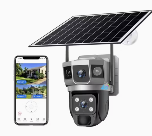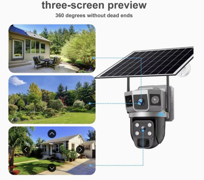 v380 dual lens, triple screen, solar powered surveillance camera 4g/wi fiV380 Dual Lens, Triple-Screen, Solar-Powered Surveillance Camera – 4G/Wi-Fi